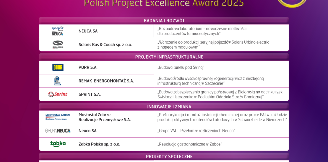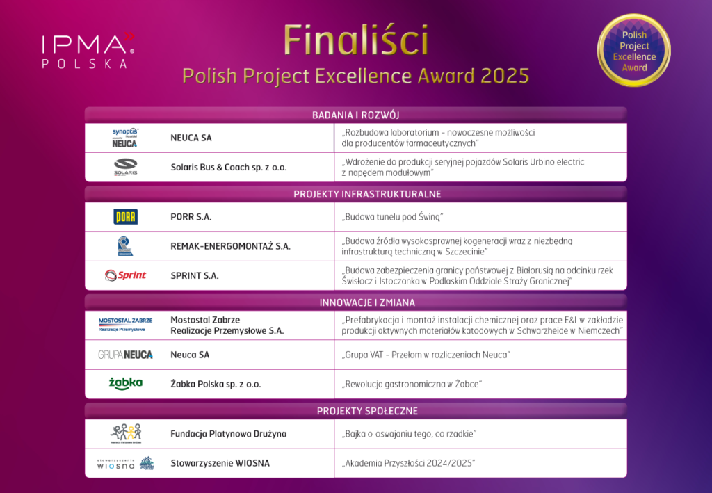 Gratuluję wszystkim finalistom! Każdy z tych projektów przeszedł przez rygorystyczny proces oceny i pokazał, że doskonałość w zarządzaniu projektami nie jest pustym sloganem, ale rzeczywistością.